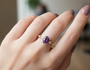 A dreamy blend of elegance and subtle sparkle, the Amethyst Whisper Ring is crafted from real 925 sterling silver and plated in radiant gold. At its center sits a captivating oval-cut amethyst-hued stone, exuding a royal charm with a delicate mystique. The slender band is adorned with dainty crystal accents that shimmer like stars in twilight, adding a refined brilliance to your every move.
