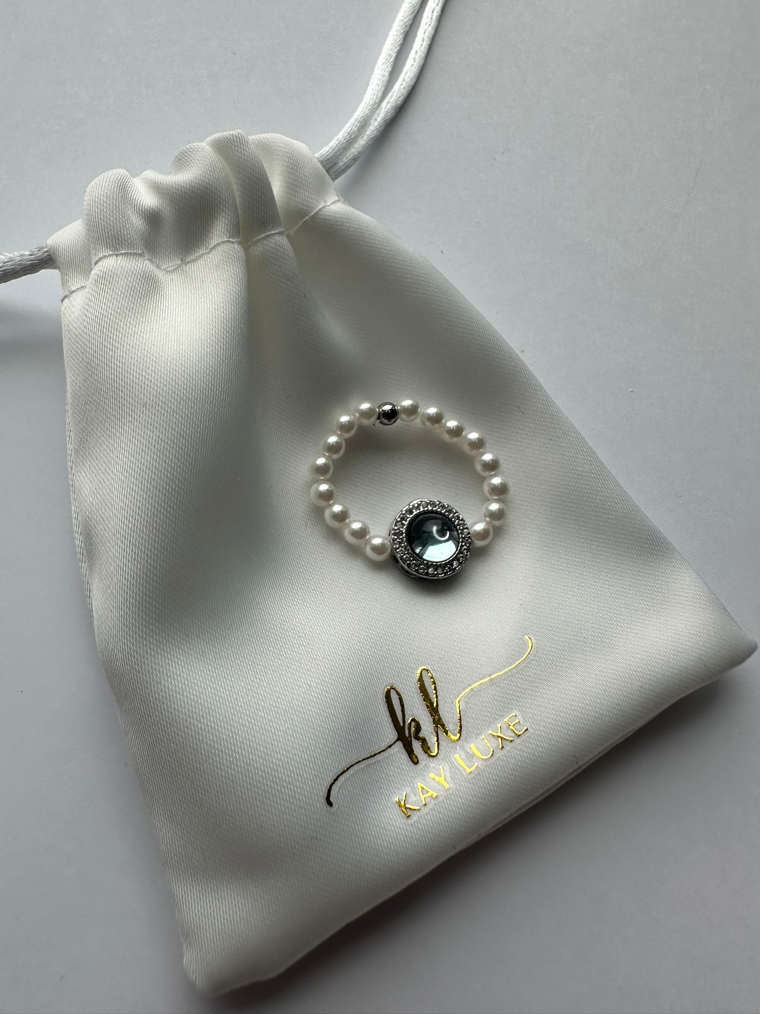 Elevate your everyday elegance with the Bluebell Ring– a harmonious blend of classic charm and modern sparkle. This delicate white gold plated, adjustable piece features a band of lustrous mini pearls, crowned with a radiant blue crystal encircled by shimmering pavé stones perfect for everyday or a special occasion.