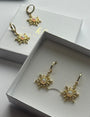 Radiate warmth and elegance with our Lumen Ray Earrings, designed in a stunning sunburst silhouette. Featuring a luminous central opal-like stone, surrounded by sparkling cubic zirconia accents that mimic sun rays. Gold-plated and lightweight offering the perfect balance between dainty and statement. Ideal for both daytime shimmer and evening glow.