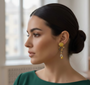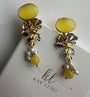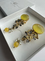 Illuminate your look with the radiant charm of the Marigold Earrings. Inspired by botanical gardens these earrings are a celebration of nature’s beauty, featuring a warm yellow agate stone that flows into intricate floral-inspired metalwork, delicately accented with lustrous pearl clusters and a glowing yellow bead drop.