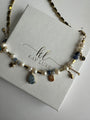 Infused with boho charm and modern elegance, our Orlena Blue Necklace features a stunning arrangement of freshwater pearls, natural stones, crystals, and glass stone charms—each one thoughtfully placed to create a harmonious, handcrafted aesthetic. The detailed gold elements add a refined shimmer, making this necklace the perfect accent piece for any occasion.