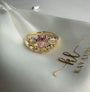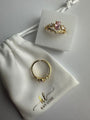 Symbolizing romance and elegance, Rosabelle Ring features a delicate pink oval stone, cradled by a crown of shimmering crystal accents. Set on a luminous 18K gold-plated band, the design blends sophistication with a touch of whimsy, making it as versatile as it is enchanting.