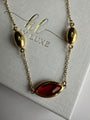 Elevate your jewellery game with our Scarlet Luxe Necklace. Bold and sophisticated necklace, featuring vibrant Czech glass stones encased in polished stainless steel. The rich red accents bring a fiery, elegant energy to the piece, making it perfect for statement styling or subtle glamour.
